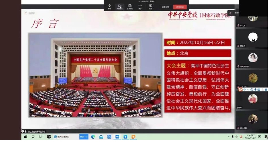 2022年11月22日下午15:30分,为深入学习贯彻党的二十大精神,深刻领会、准确把握党的二十大精神实质和丰富内涵,切实把思想和行动统一到二十大精神上来,bevitor伟德各支部组织全体党员参与学习“大思政讲堂——以中国式现代化推进中华民族伟大复兴”视频会议。
