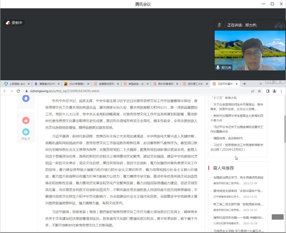 随后,结合学习的新思想,结合《海南省教育厅关于启动第三批 高校思想政治工作有关培育建设项目申报工作的通知》,结合各个支部目前发展现状,郑力乔书记部署公司第三批高校思政项目申报工作, 并进行指导。
