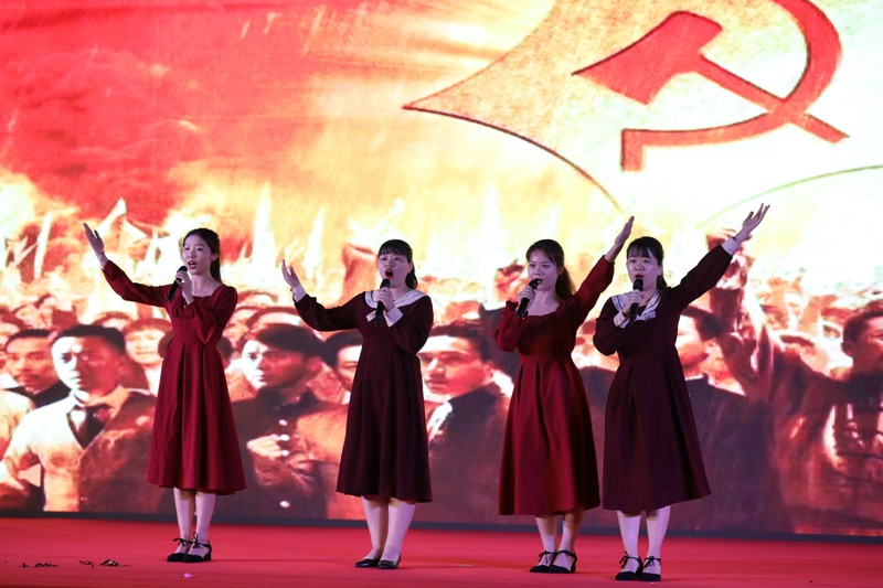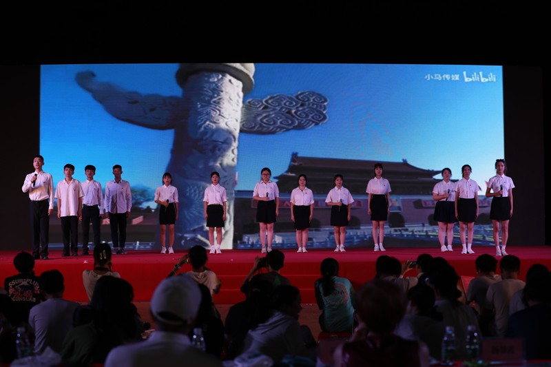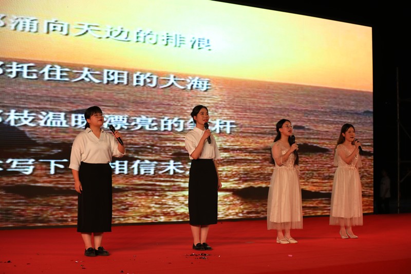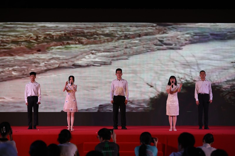 “美哉我少年中国,与天不老;壮哉我中国少年,与国无疆!”张志、杨志强等20名同学齐颂《少年中国说》,大气磅礴,壮怀激烈,携我们一同领略少年中国豪迈崛起的壮美画卷;马凯、张佳怡同学《在冬天的麦苗上,看到中国的春天》为我们带来万物复苏、欣欣向荣的春之讯息;程馨煜、闫浩同学朗诵《不朽》之诗篇,将伟大英雄、革命烈士不朽的丰功伟绩娓娓道来;“一条游船,劈开了南湖的波浪……”郑燕同学以一首情感充沛的《红船,从南湖起航》,将我们的思绪拉回100年前,在南湖——那里有着中国革命的第一缕曙光;“朋友,坚定地相信未来吧”,徐千千、黄月洁等同学的《相信未来》赤忱地歌唱着希望:“相信未来,热爱生命”!