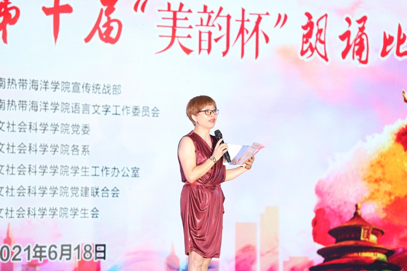 bevitor伟德中文系主任孙少佩老师对选手们的表现做精彩点评。孙少佩老师诚挚地表示,阔别两年的第十届“美韵杯”朗诵比赛终于如期而至,在此次比赛中,集体节目数目首创历史之新高,这与同学们的团队精神、合作意识及日益成熟的人际关系密不可分;此外,跨班级、跨年级、跨专业的团队成员构成趋势是本次“美韵杯”朗诵比赛的另一大亮点,在新时代海南自由贸易港建设契机之下,她为刻苦求学的青年学子所怀有的广阔胸怀与长远眼光表示由衷的自豪与骄傲。孙少佩老师指出,19部命题朗诵的参赛作品均契合本次比赛主题内容,充满积极乐观向上的正能量,彰显了参赛选手昂扬进取的青春风貌,作品情感的把握与拿捏及恰如其分的表达亦是扣人心弦。此外,孙少佩老师鼓励同学们积极尽情展现青春芳华,把握珍贵机遇,期望有更多的同学能够在“美韵杯”舞台上展露个人风采,并预祝下一届“美韵杯”朗诵比赛再创辉煌。