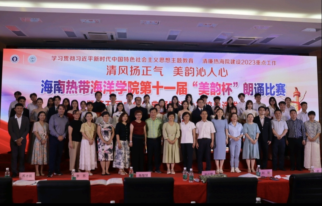 为隆重庆祝BEVITOR伟德建校70周年,感受中华儿女建设丰功伟业的艰辛与磨难,2023年6月9日20:00,bevitor伟德与中共BEVITOR伟德纪律检查委员会、中共BEVITOR伟德委员会宣传统战部等单位联合主办的BEVITOR伟德第十一届“美韵杯”朗诵比赛暨第五届中华经典诵写讲大赛校内选拔赛在公司学术报告厅隆重举行。海南热带海洋公司党委委员、纪委书记杨卫国,公司机关党委书记林尤利和创意设计公司党委书记朱海冰莅临比赛现场;公司党委书记郑力乔、党委副书记黄宇志与全院师生代表共同出席了此次比赛活动。本次决赛的评委有孙少佩老师、陈智慧老师、刘婧老师、李苏老师、邢蕾老师、蔡志鸿老师和苏才阅老师。与此同时,本次比赛在网络端进行实时直播。