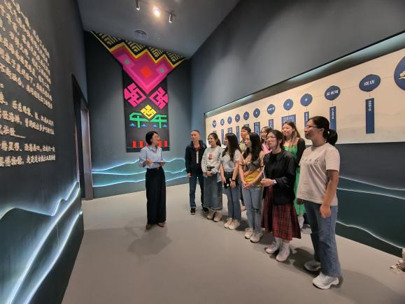在李星青馆长的讲解和引导下,师生们参观了博物馆乐东历史文化陈列不同展区,体验了由裸眼3D技术打造的乐东醉美山水沉浸式体验空间,观赏了乐东黎族部落的原始生活状态以及乐东山水,了解了朱庐执刲银印和乐安城砖等文物背后的故事。