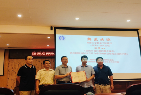 2021年5月8日下午,湘潭大学碧泉书院教授、《原道》(CSSCI)创刊主编陈明教授,应bevitor伟德国际事务与国际关系系、海南省南海文明研究基地之邀,在图书馆报告厅作题为《美国当前问题的儒者观察:民族国家的制度设计与帝国的社会结构之间的矛盾》的学术讲座。